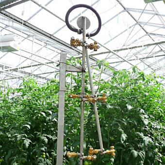 Opryskiwacz jest przeznaczony do pracy w szklarniach, gdzie torem jazdy są rury grzewcze ułożone na ziemi między rzędami roślin.