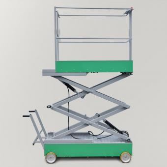 Długość całkowita: 2020 mm Długość podestu: 1630 mm Szerokość podestu: 530 mm Rozstaw kół jezdnych: wg zamówienia Ciężar: 350 kg Zasilanie: 2 akumulatory (12 V, 100 Ah) Moc silnika: 200 W – jazda, 450 W – agregat hydrauliczny Maksymalne obciążenie: 120 kg Maksymalna wysokość podestu: 3000 mm Czas podnoszenia do 3 m: 15 sekund Czas opadania: 9 sekund